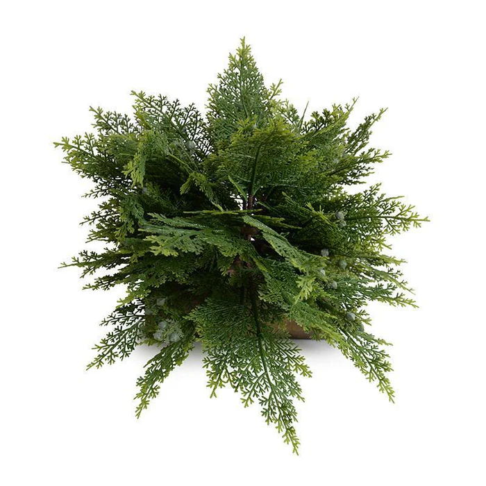 Our 30″ Enduraleaf Arborvitae bush is a great landscaping option for the challenge of outdoor spaces. It features dense green foliage with spring green tips and green berries, offering all the beauty of the real thing, but without the maintenance. The bush measures 24 inches high from the top of the mache pot to the top of shrub.